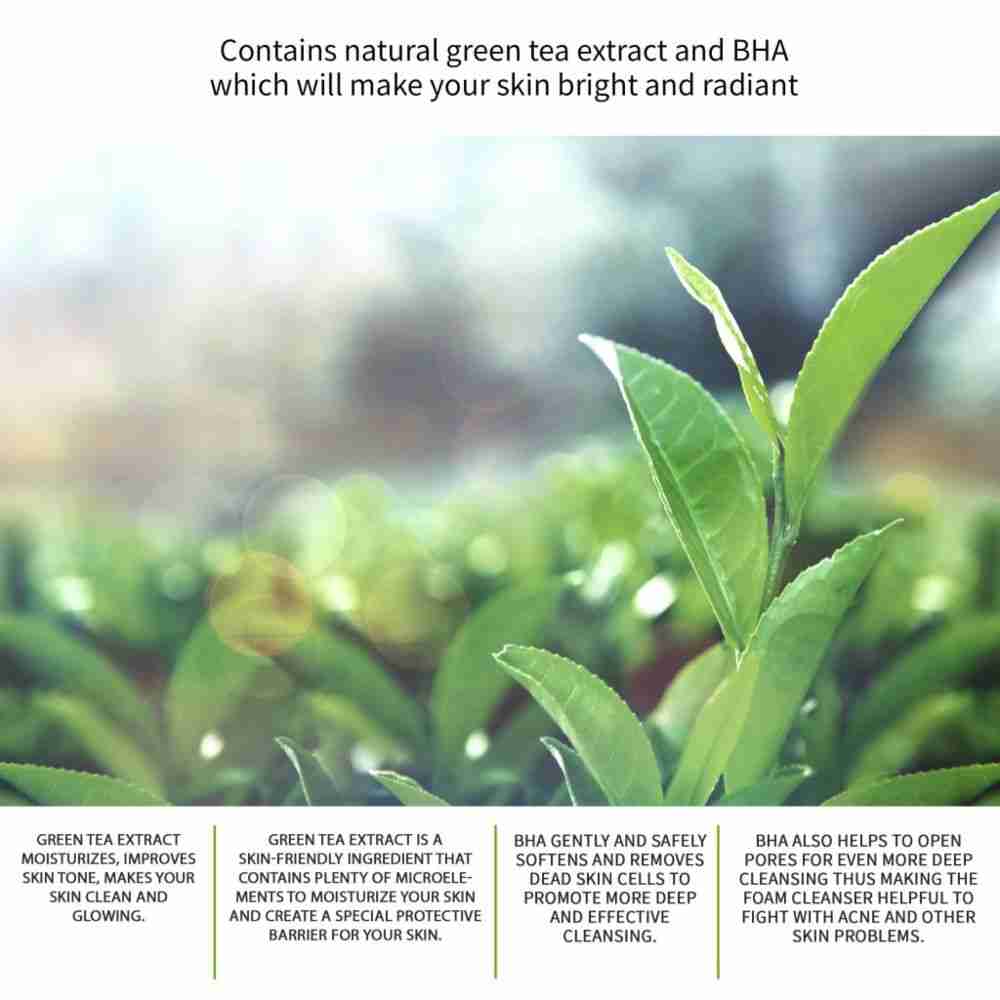• Grüner Tee spendet Feuchtigkeit, verbessert den Hautton, macht Ihre Haut sauber und strahlend.