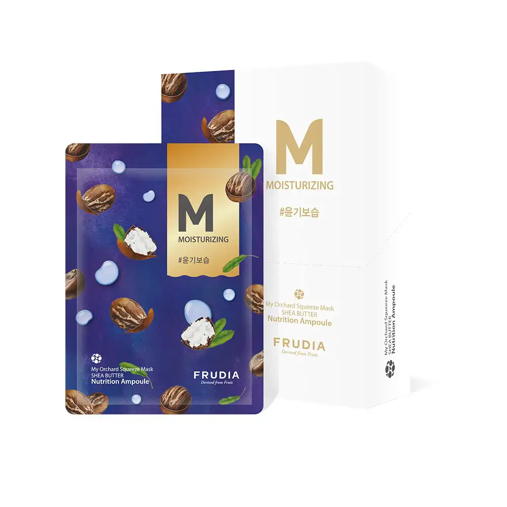 Frudia My Orchard Squeeze Mask Shea Butter is a mask solution for skin lacking moisture with stiff feeling. Double squeeze method effectively deliver natural nourishment and vitamin from honey and fruit juice to skin. High purity collagen ingredient provides intense nourishment to dry, weak skin. The cream ampoule full of nourishment penetrates beneath the skin to keep it firm and glossy.