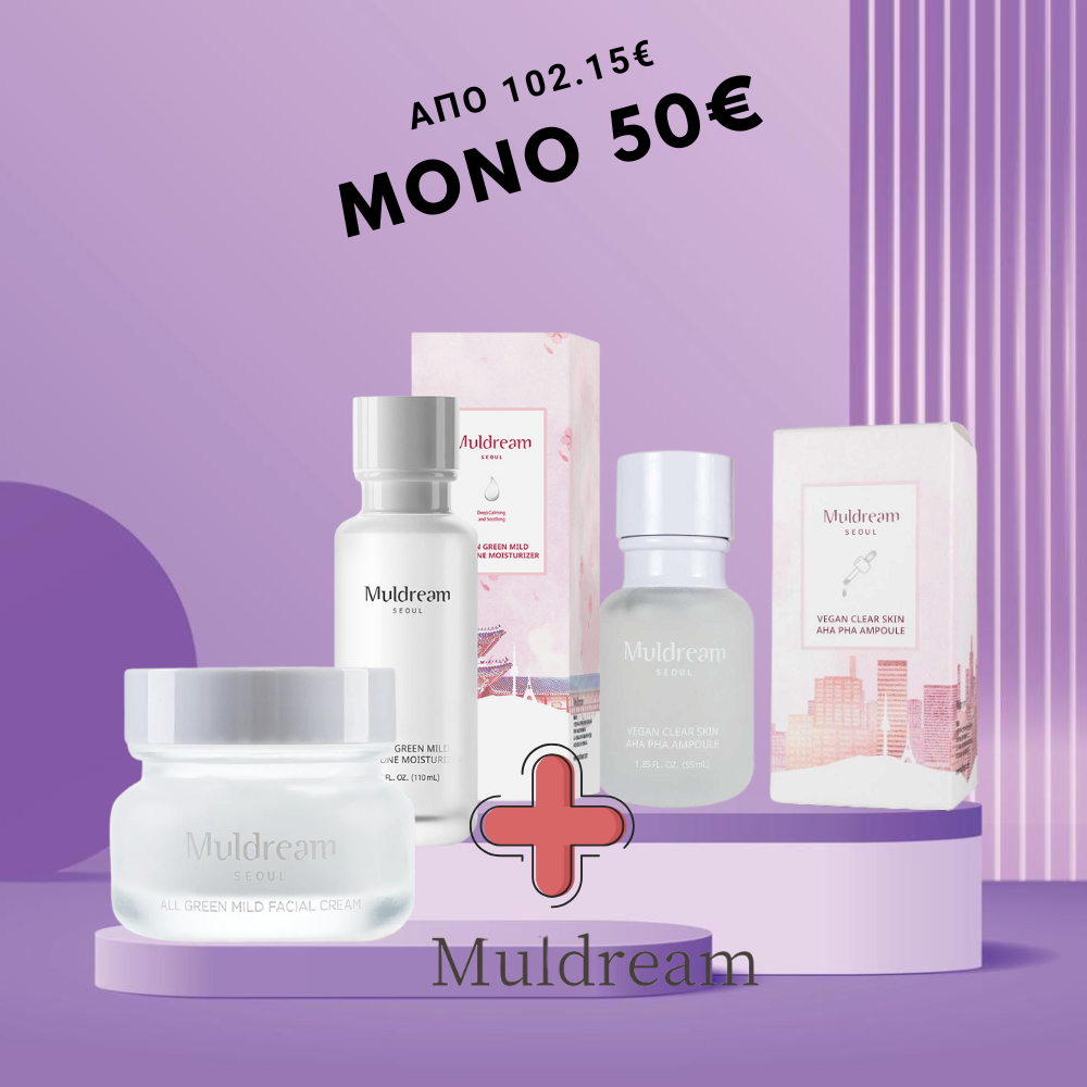 Muldream all green mild Facial Cream - Vegan Clear Skin AHA PHA Ampoule + Gift - ONLY €50