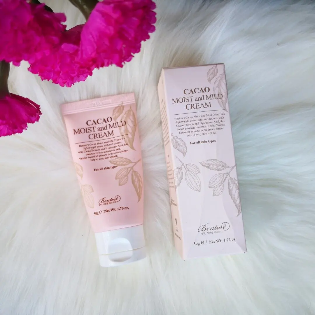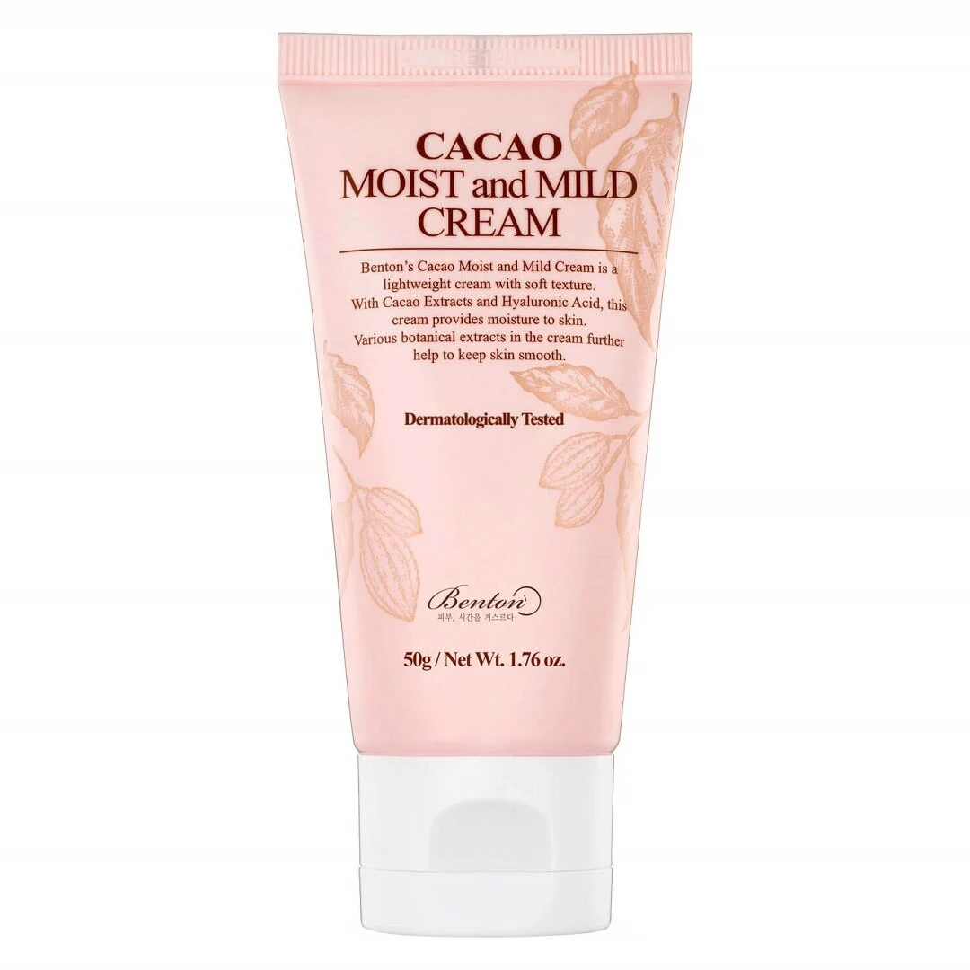 Η κρέμα Benton’s Cacao Moist and Mild Cream είναι μια κρέμα με ελαφριά υφή, οπότε ακόμη και μια γενναιόδωρη ποσότητα κρέμας δεν δίνει βαρύτητα. Τα εκχυλίσματα κακάο και το υαλουρονικό οξύ βοηθούν στην ανανέωση του δέρματος, αφήνοντάς το υγρό και σφριγηλό.