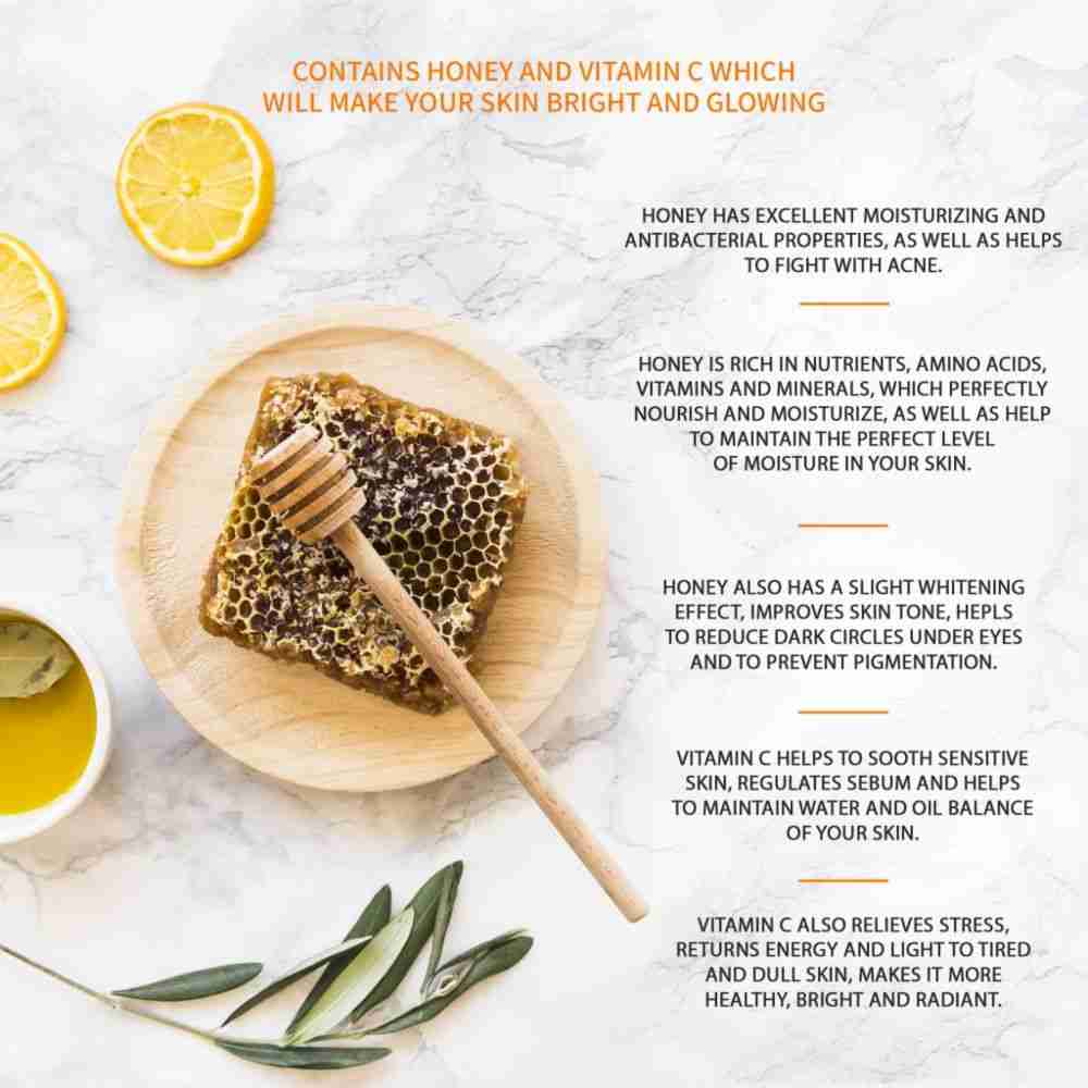 Water, Myristic Acid, Glycerin, Palmitic Acid, Stearic Acid, Lauric Acid, Potassium Hydroxide, Propylene Glycol, Cocamidopropyl Betaine, Sorbitan Olivate, Honey Extract (100ppm), Glyceryl Stearate, Sodium Chloride, PEG-100 Stearate, Chlorphenesin, Hydroxyethylcellulose, Tocopheryl Acetate, Butylene Glycol, Dipropylene Glycol, Ascorbic Acid (10ppm), Centella Asiatica Extract, 1,2-Hexanediol, Polygonum Cuspidatum Root Extract, Scutellaria Baicalensis Root Extract, Camellia Sinensis Leaf Extract, Glycyrrhiza Glabra (Licorice) Root Extract, Rosmarinus Officinalis (Rosemary) Leaf Extract, Chamomilla Recutita (Matricaria) Flower Extract, Disodium EDTA, CI 19140, CI 15985, Phenoxyethanol, Fragrance